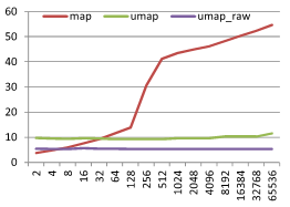 따라서 데이터의 양이 적을 경우 map보다 Hash Table의 성능이 우수해진다.
