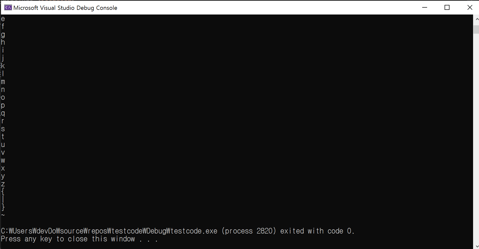 char 자료형 범위내에서 수행할 수 있는 조건식이(ch<127) 주어지는 경우 정상적으로 for문이 작동한다.