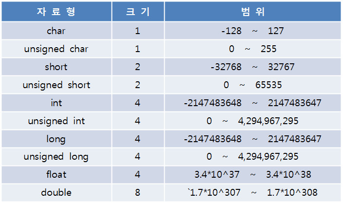 int형은 4바이트 자료형으로서 -2,147,483,648 ~ 2,147,483,647 범위를 표현할 수 있고