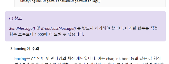 +Unity Docs에서도 SendMessage의 비사용을 적극 권장하고 있다.